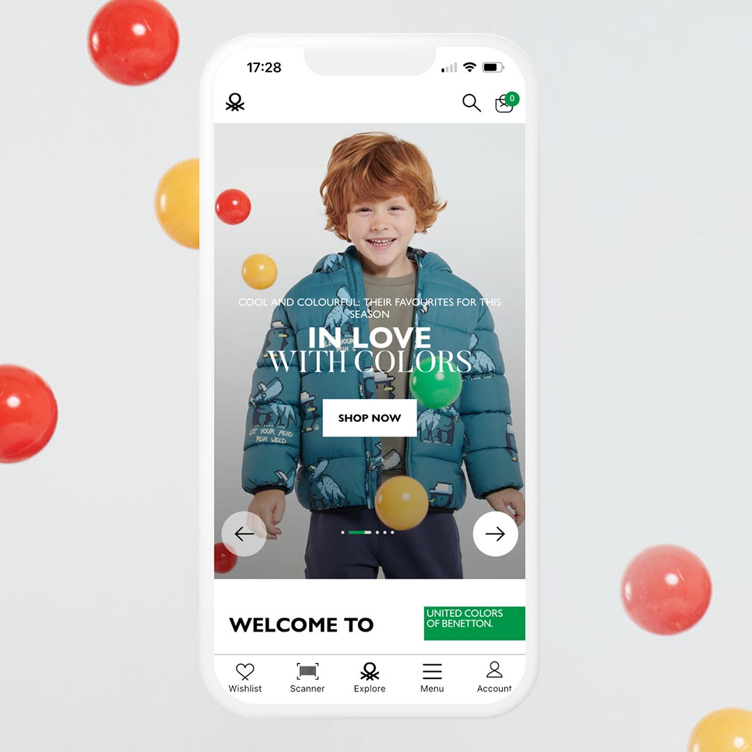 Dank ihrer Funktionen kannst du mit der APP für Kleidung von Benetton den Barcode eines Artikels, den du im Store siehst scannen, um online nach ihm zu suchen und sofort detailliertere Informationen zu Größen, Farben und Verfügbarkeit angezeigt zu bekommen.
