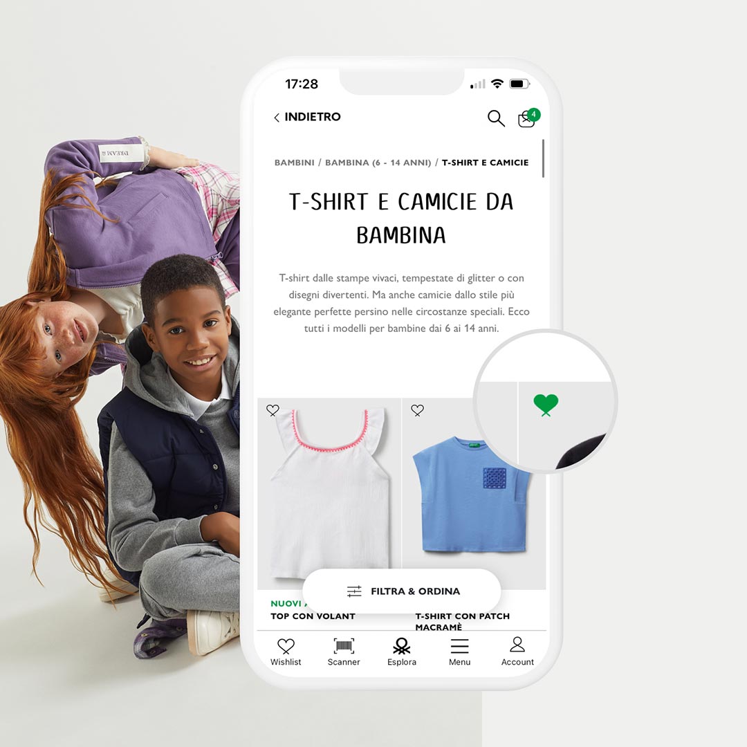 Die neue APP für Kleidung von Benetton gibt dir auch die Möglichkeit, in wenigen einfachen Schritten deine Wunschliste anzulegen und alle deine Lieblingslooks abzuspeichern.